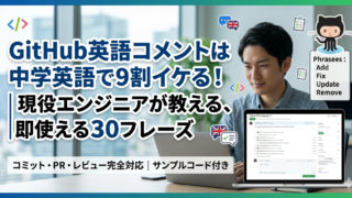 技術英語の実践術 GitHubコメントで使える英語フレーズ30選【現役エンジニアが厳選】 GitHubのコメントを英語で書けなくて困っていませんか? 現役ITエンジニアが実務で使っているフレーズを30個厳選しました。 コミットメッセージ・プルリクエスト・コードレビューの3つに分けて解説します。 2026.03.29 技術英語の実践術