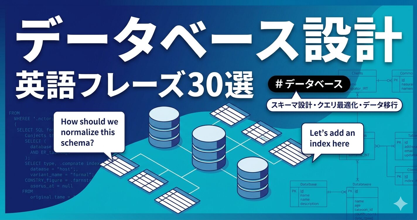 データベース設計を支えるシステム設計全体の英語フレーズをさらに深掘りしたい方は、エンジニアの英語システム設計議論術|スケーラビリティ・トレードオフ説明フレーズ30選も参考にしてほしい。
