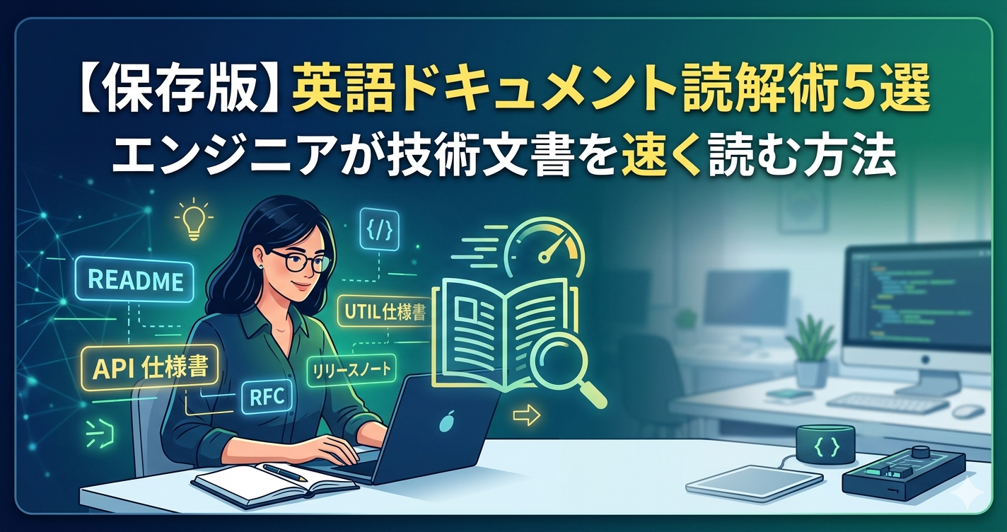この記事では、英語技術ドキュメントを速く正確に読む5つのテクニックと、頻出定型表現30選をまとめた。ドキュメントの種類別の読み方も解説している。