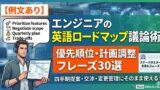 3つ目は「ロードマップ優先度の合意形成」だ。複数の施策を並べ、何を先にやるかをステークホルダーと英語で議論するときに表現が思い浮かばない。