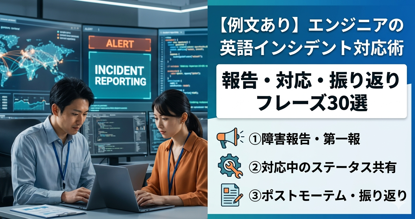 インシデント発生前のリリース告知フレーズも準備しておきたい方は、エンジニアの英語リリース告知術も合わせて読んでほしい。
