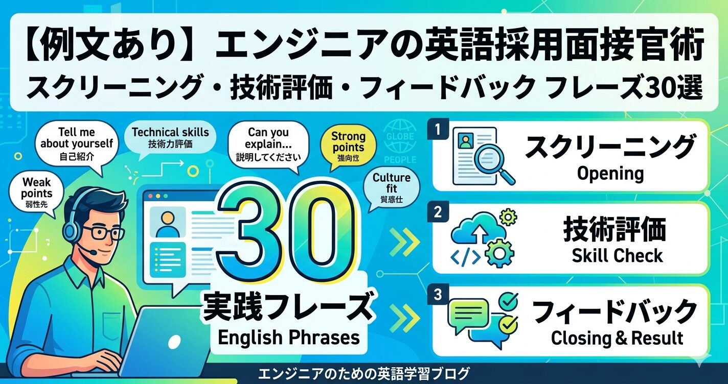 【例文あり】エンジニアの英語採用面接官術|スクリーニング・技術評価・フィードバックフレーズ30選