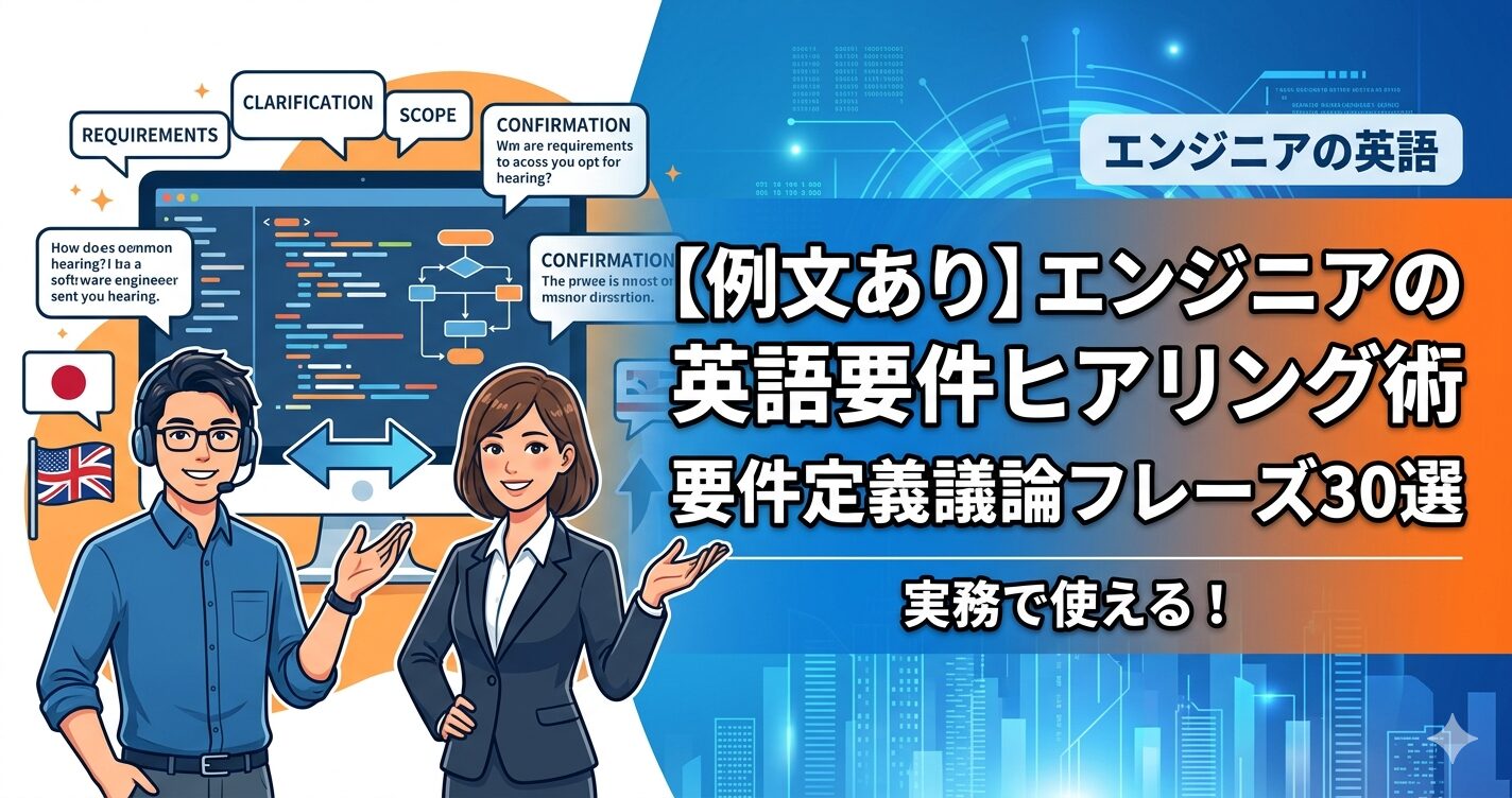 この記事では、エンジニアやITコンサルタントが英語要件ヒアリング・要件定義議論で使えるフレーズ30選をシーン別に解説する。ヒアリング開始から要件の引き出し・明確化・スコープ確認・合意形成まで完全網羅した。