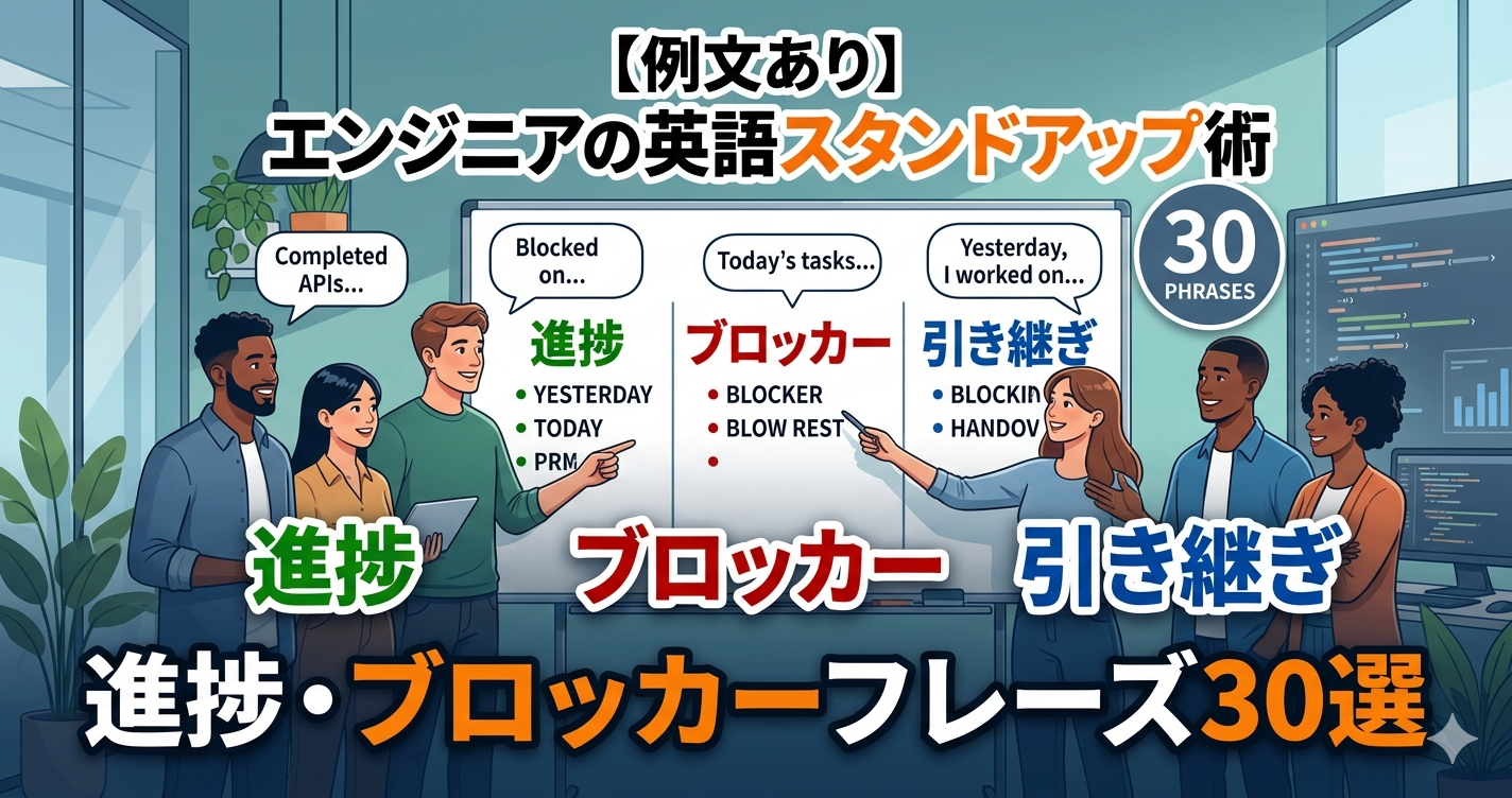 この記事では、エンジニアが実務で使える英語スタンドアップフレーズ30選をシーン別に解説する。進捗報告・ブロッカー共有・今日の予定まで完全網羅した。
