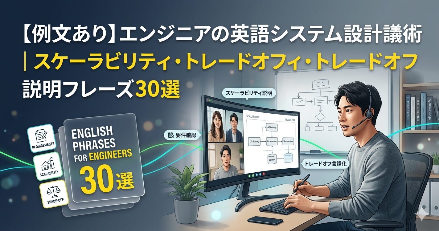 英語アーキテクチャ議論での設計提案・技術選定フレーズをさらに深掘りしたい方は、エンジニアの英語アーキテクチャ議論術|設計レビュー・技術選定フレーズ30選も参考にしてほしい。