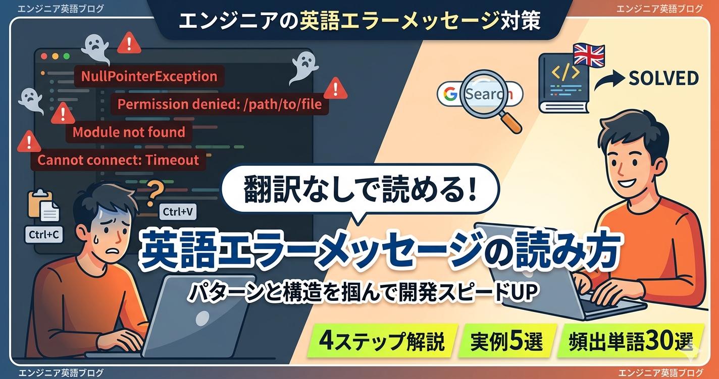 「NullPointerException」「Permission denied」「Module not found」——エンジニアの画面には毎日、英語のエラーメッセージが現れる。